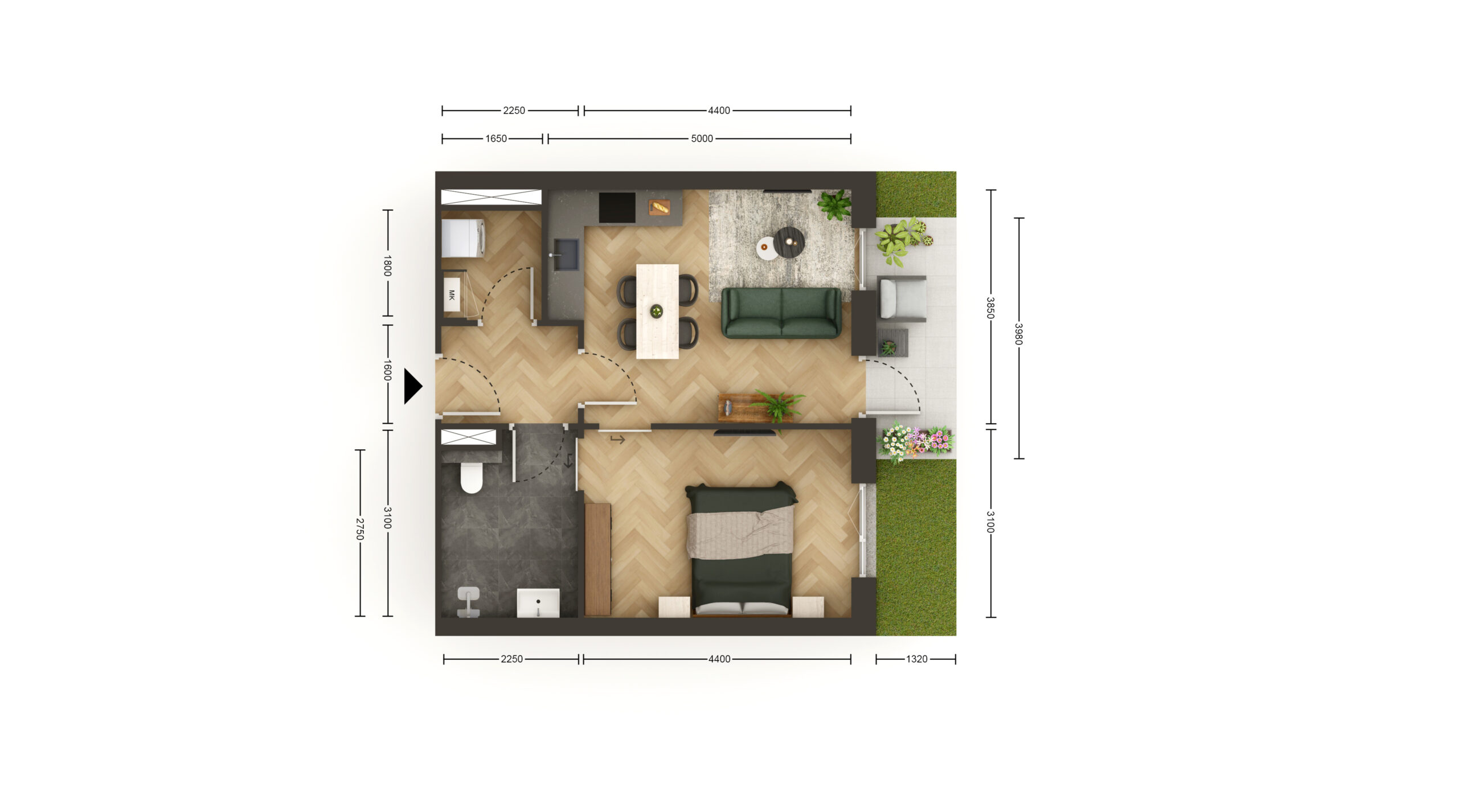 Het appartement is gelegen op de Begane grond en beschikt over minstens energielabel A++.